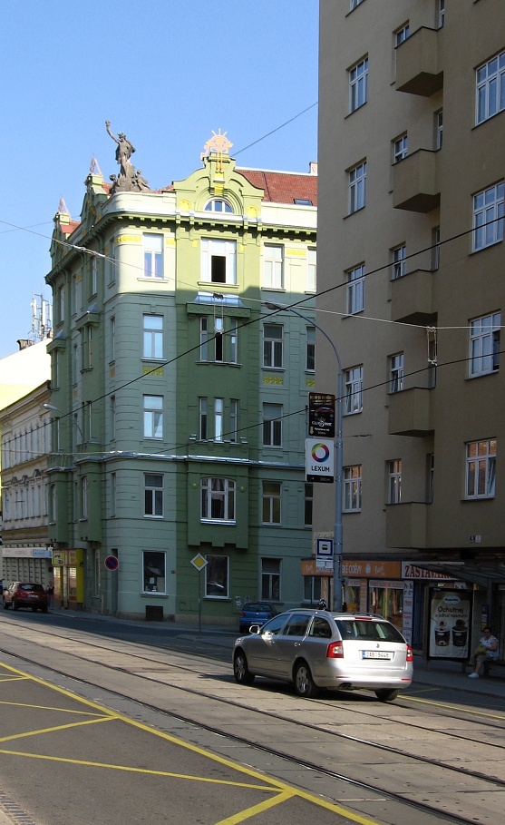 Socha Svobody v Brně - na střeše budovy v Hybešově ul.