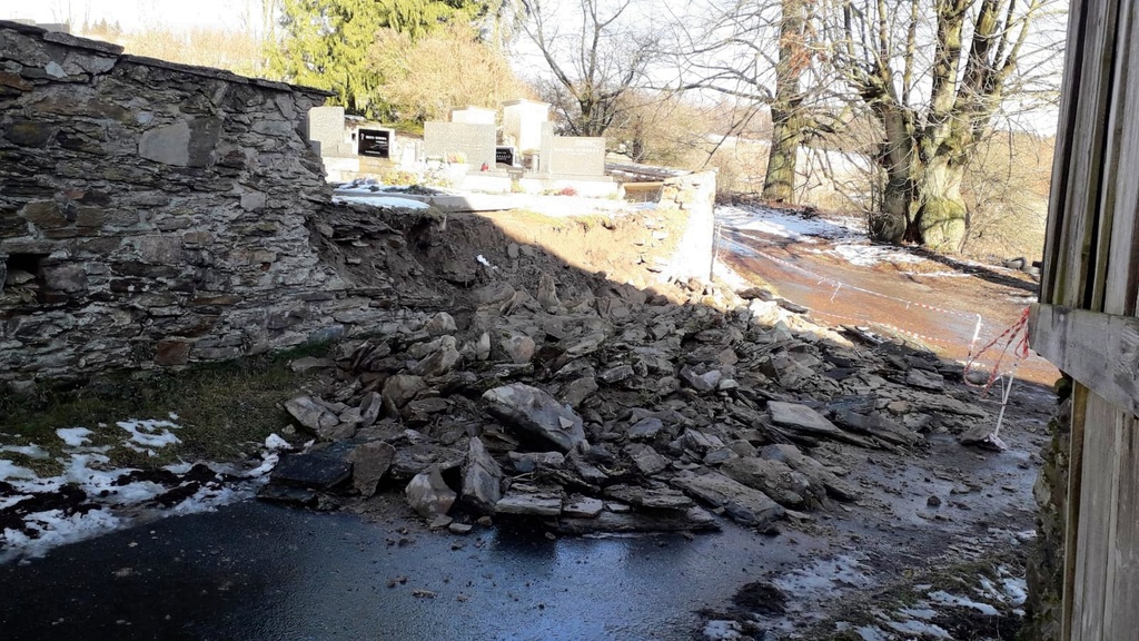 Zřícená zeď hřbitova 7.2.2020